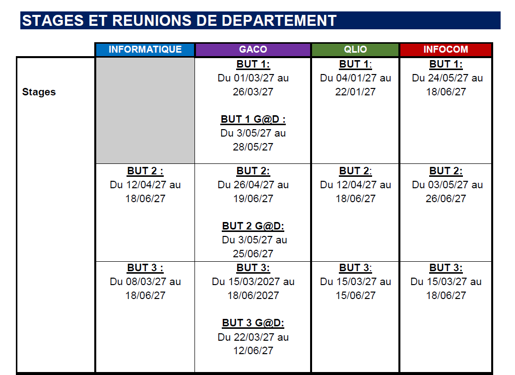 Le sujet du stage doit être identifié par l'entreprise et validé par le département concerné après concertation.